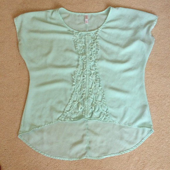 Sheer light blue flowy top, bought from target. Size small but fits more of a medium. I accept trades 😊