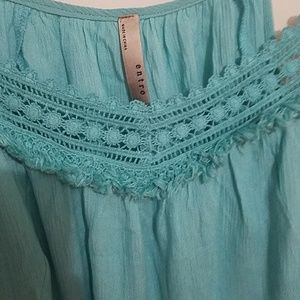 Beautiful teal blue blouse with intricate collar design. Tapers down on sides and has adjustable straps. Bought new and never worn.