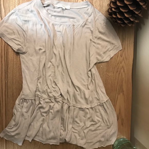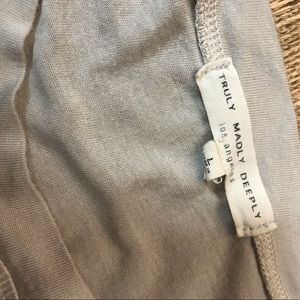 This is a adorable flowy t-shirt by Truly Madly Deeply in a size large. I usually am a size small but was wearing this with leggings or jeggings and it makes for a cute outfit. The flowy ruffle at the bottom give it a super flattering look.