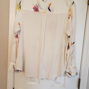 Light weight top, flows nicely , long sleeve but has ability to roll up and fastened with button