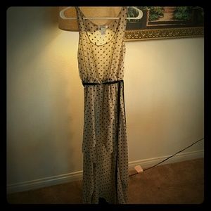 Translucent/see through cover up, nice flowy vintage feel. Polka dot with a beige undertone and a tie, sleeveless. 100% polyester