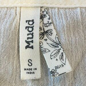 White 3/4 length sleeve blouse with floral details and a tie front neckline featuring tassels and a small cutout