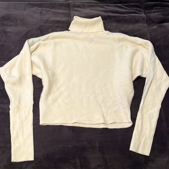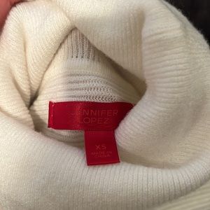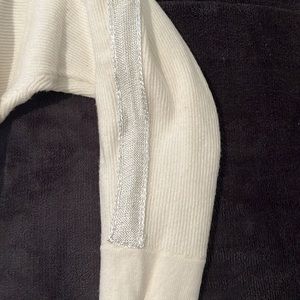 Cute and flowy white turtleneck sweater with sparkle silver accents from Jennifer Lopez. Very soft and only worn a few times so it’s in great condition!