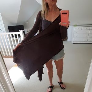 Caite, chocolate brown, long fronts viscose/nylon blend, great to stash in a bag and pull out on a cool night