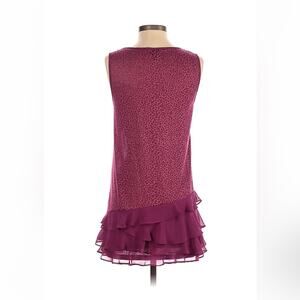 Fun pink cheetah pattern with asymmetrical ruffled and tiered hem. Shift style, with lots of stretch and no pockets. Pull over.