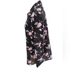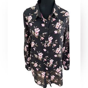 Fluent Life lightweight 100% cotton black floral button front blouse, size XL. Button cuffs, button front, slightly rounded bottom. Approximate measurements are pit to pit 22”, length from shoulder approximately 28”.