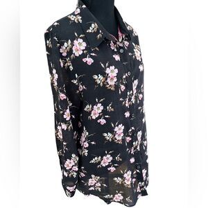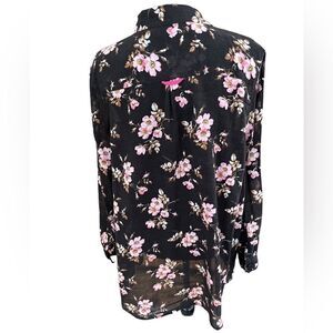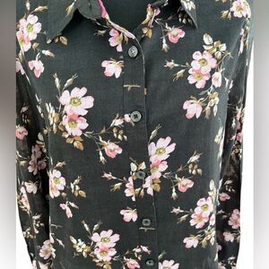 Fluent Life lightweight 100% cotton black floral button front blouse, size XL.