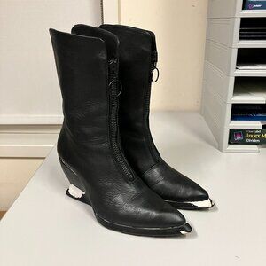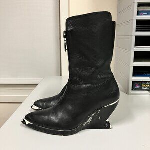 *Barely Used* F/W 2016 Ishshoes HEEBIE JEEBIES Wedge Boots, Size 8 (best for 8.5). These boots are stunners! Working front zip. There's also an elastic at the back of the ankles, so it can accommodate larger lower legs. Not recommended for tall insteps. Best for a size 8.5. See measurements below.