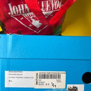 Fluevog ESOTERIC TEMPTATIONS ROS STRAPPY SHOE W/ SKULLS, size 9.5, black.