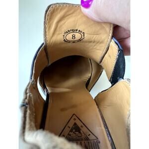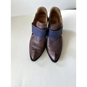 Fluevog Room 502 open-sided bumped toe heel bootie leather purple sz 8