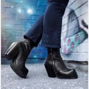 Soft Black Leather Platform Ankle Boot. Sleek design with a convenient zipper. These boots have never been worn only tried on indoors. Comes with duster bag & original box. NWOT