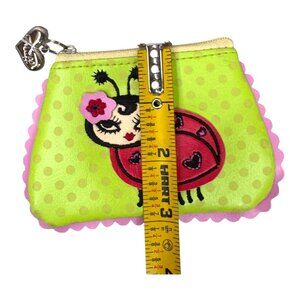 Fluff Ladybug Coin Purse Keychain Clip Lime Green Pink Accent Polka Dot NEW