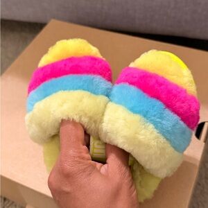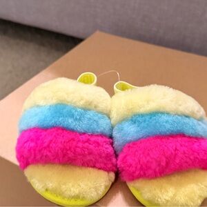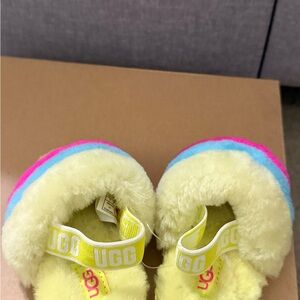 Combining slipper and sandal into an adorable statement shoe, the Fluff Yeah is as good as it sounds, and as soft as it looks. Plush sheepskin wraps the foot in cozy warmth, while the durable sole and elastic heel strap are ideal for kids on the move.