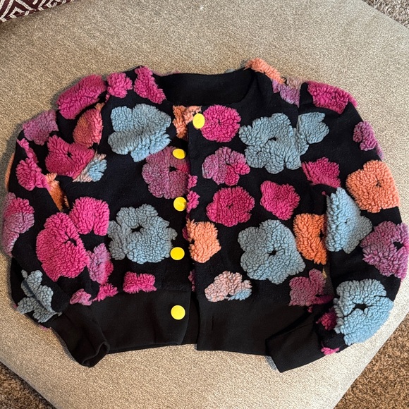 Brighten up your wardrobe with this vibrant floral jacket. Featuring a playful mix of colors, it's perfect for adding a pop of fun to your wardrobe.