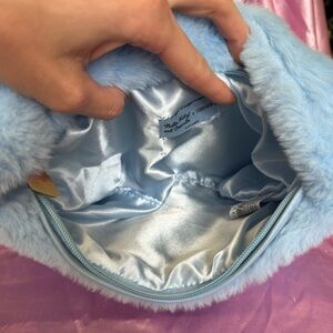 Charming Y2K blue furry bag with Hello Kitty patch. Soft texture and sparkly design! NEW WITHOUT Tags. NEVER USED!!