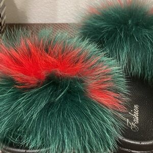 These are the cutest fluffy slippers for the house or a quick errand run for that matter. Gucci like colors but this is not Gucci. Fits size 6-6.5