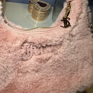 A pink fluffy juicy couture purse. It has both a short and a long strap. This has never been worn and never been used no tears no rips and no stains. 🌸