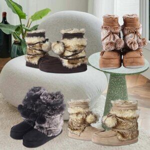 • Style: Features a cute pull-on design with playful pompom details and a soft micro-suede upper. The thick faux fur lining provides a plush feel.