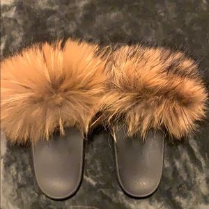 Selling a pair of fluffy slides. There is a bit of lifting on the side, but it can easily be fixed!