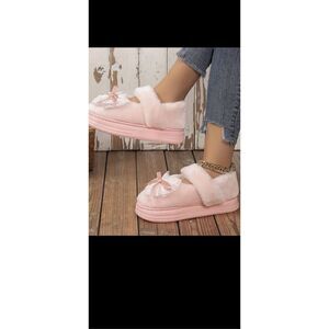 Fluffy Soft platform slipper with bow decor, non slip soles. They are so comfy !