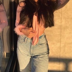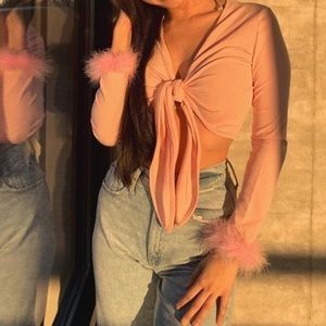 Pink fluffy wrist top size small