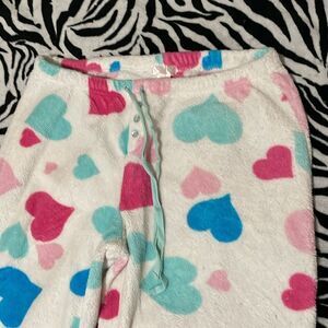 Fluffy kawaii white bottom pj pajama pants valentines heart print size large