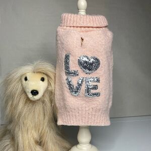 Fluffy Pink Sparkle LOVE Dog Sweater