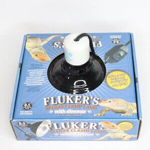 Fluker's Deluxe Clamp Lamp with dimmer for incandescent bulbs & ceramic heat emitters. Brand new, never used. For reptiles/lizards. Please see pictures for item condition.