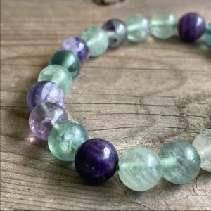 This beautiful bracelet is made with natural Fluorite and has stretchy cord to fit most adult wrist sizes!