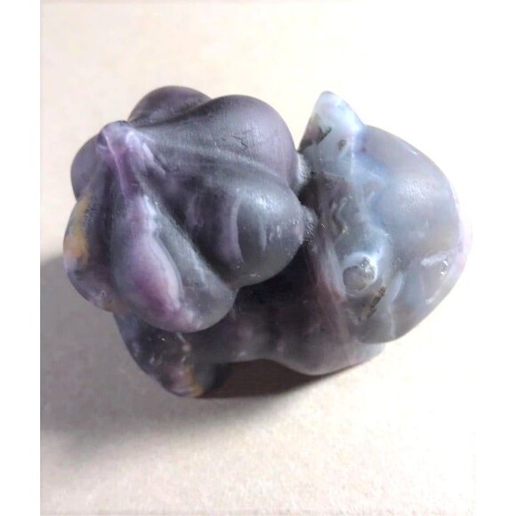 Fluorite Bulbasaur Carving measures 2.14 inches wide, 1.71 inches tall and 1 34 inches wide. "Bulbasaur is a cute Pokémon born with a large seed firmly affixed to its back; the seed grows in size as the Pokémon does."