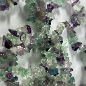 Fluorite Gemstone Chip Chippy Beaded Necklaces Lot 2 Green Purple Natural 32"