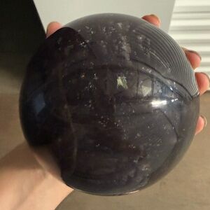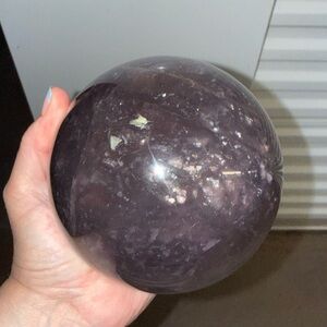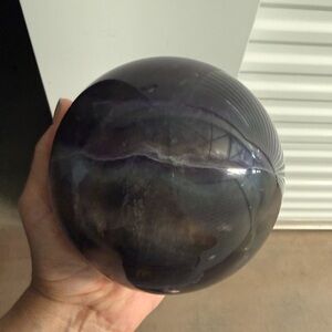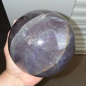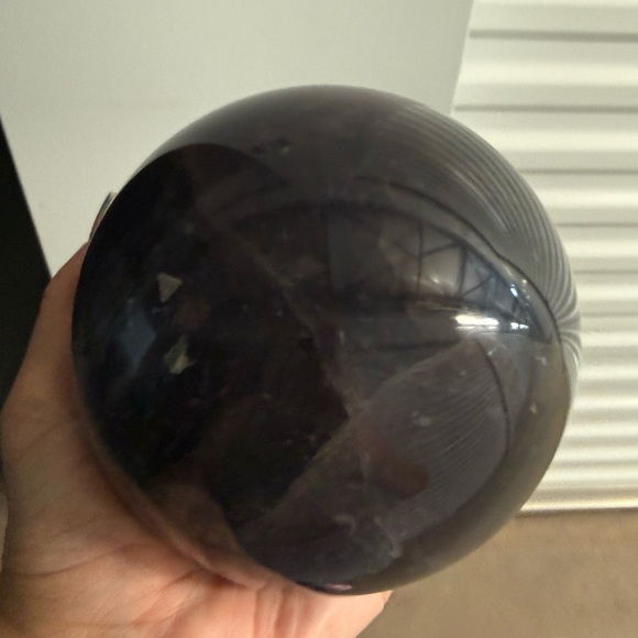Fluorite sphere. Deep translucent purple tones with natural internal veining and reflections. Smooth glossy finish. Great for display or collection. 6 inches. Comes with stand.