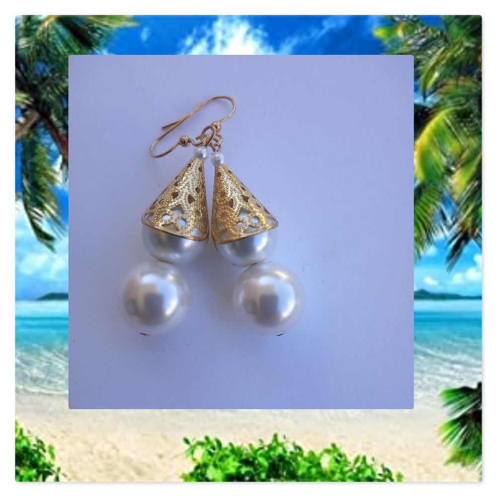 10 & 14mm white pearls & fluted gold-filled brass filigree, gold-filled earring hooks
