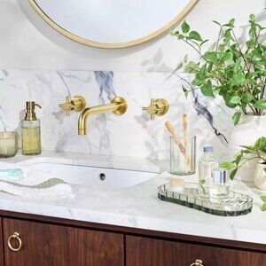 Organize your bathroom essentials in one place with this Fluted Glass Bathroom Tray from Hearth & Hand™ with Magnolia. Made of glass, this bathroom tray has a fluted texture and raised edges to keep your items handy. Designed in a rectangular shape with round edges, it brings classic elegance to your bathroom space.