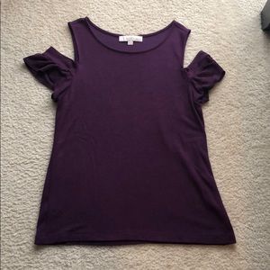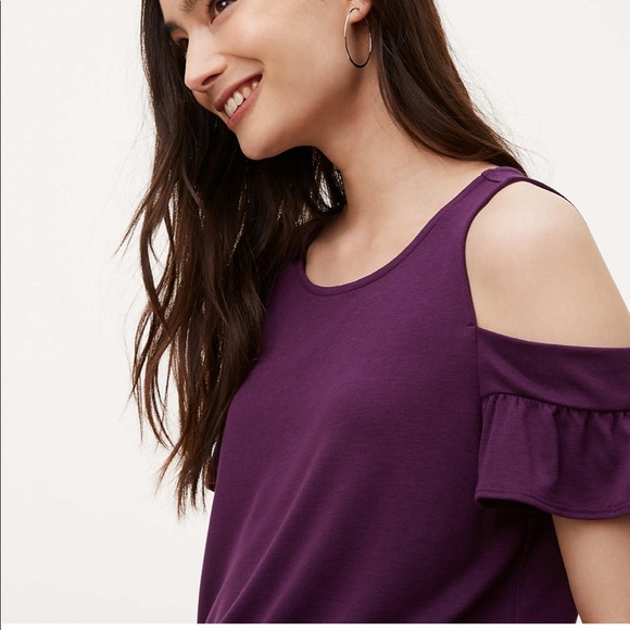 Cold shoulder styling meets flutter sleeves. Round neck. Short flutter sleeves.