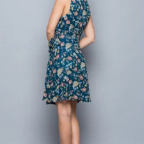 Flutter! L.A. Soul Sleeveless Navy Floral Wrap Dress, Size Medium