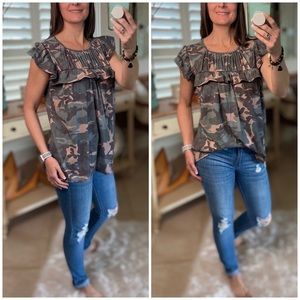 ❤️🔥Flutter Ruffle Sleeve Relaxed Camouflage Top 3620