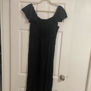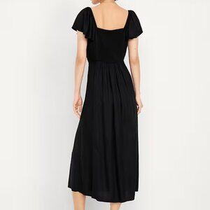Flutter-Sleeve Crepe Midi Dress Old Navy size Small Tall color Black Jack