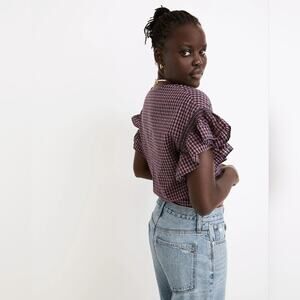 Flutter-Sleeve Side-Tie Wrap Top in Plaid XS NWT