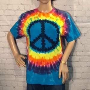 Tie dyed tee shirt with large peace sign on front