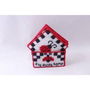 Fly Away Home, Plastic Canvas Needlepoint Coasters with Ladybugs, Set of 6,