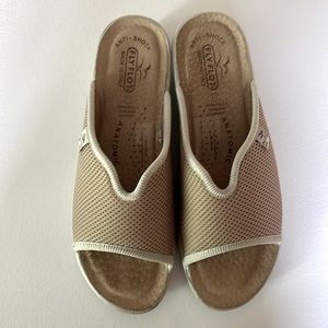 Fly Flot Anti-Shock Slide Sandals Comfort Leather Insole Beige Italy Size 6.5