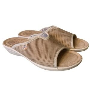 Keywords: Fly Flot, sandals, slides, womens shoes, beige, mesh, comfort, casual, slip on, footwear, summer shoes, comfortable sandals, house shoes
