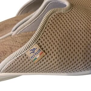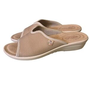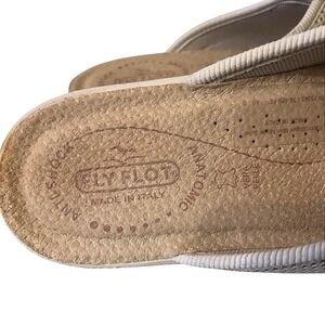 Fly Flot Ladies Size 40 US 9 Tan Fabric Mules Casual Rubber Comfort Slides Italy