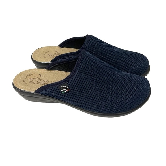 Fly Flot Navy Blue Mesh Slip On Clogs Size 40 Comfort Travel Neutral Casual