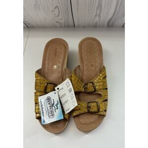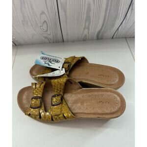 NEW Fly Flot Sandal Womens Size 40 (9) Yellow Anti Shock Slide Comfort Leather