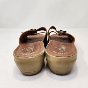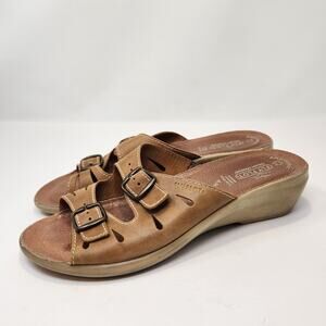 Fly Flot Womens Dana Brown Leather 2 Strap Sandals Size 42 US 11 Wedge Comfort