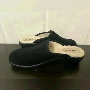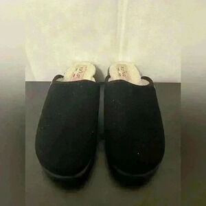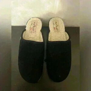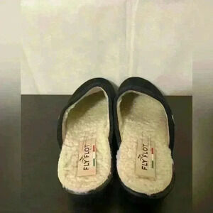 Fly Flot Womens Mule Flat Shoes Black Slip On Sherpa Lined Logo Italy Size 8