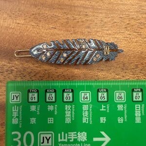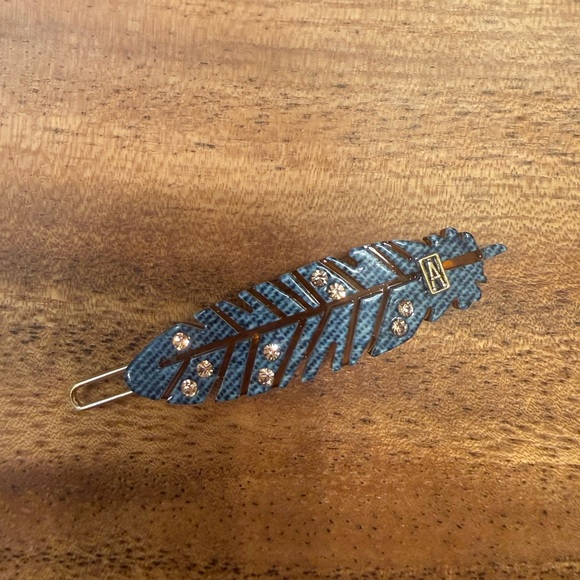 Make a statement with this one-of-a-kind feather-shaped side clip. Featuring a stunning denim blue texture and sparkling rhinestone accents, it’s the ultimate accessory for those who dare to be different.