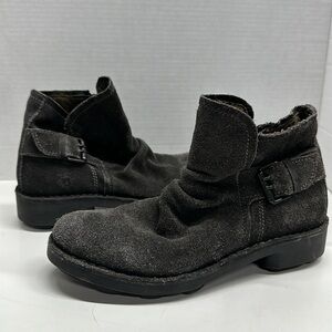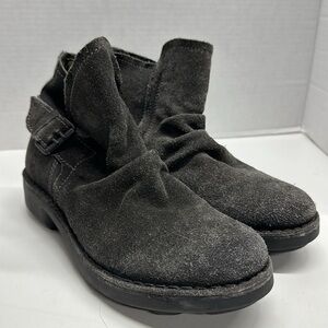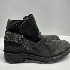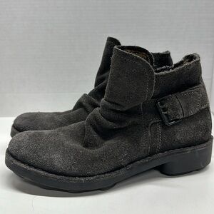 Fly London Ankle Booties Suede Boots Shoes Side Zip Buckle Gray Size 38 US 8